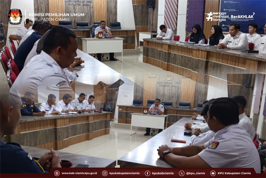 Ciamis — KPU Kabupaten Ciamis melaksanakan briefing rutin pada Senin pagi (6/10) di Aula KPU. Kegiatan ini dipimpin oleh Sekretaris KPU Kabupaten Ciamis, Bapak Agus Kurnianto, dan diikuti oleh seluruh staf.