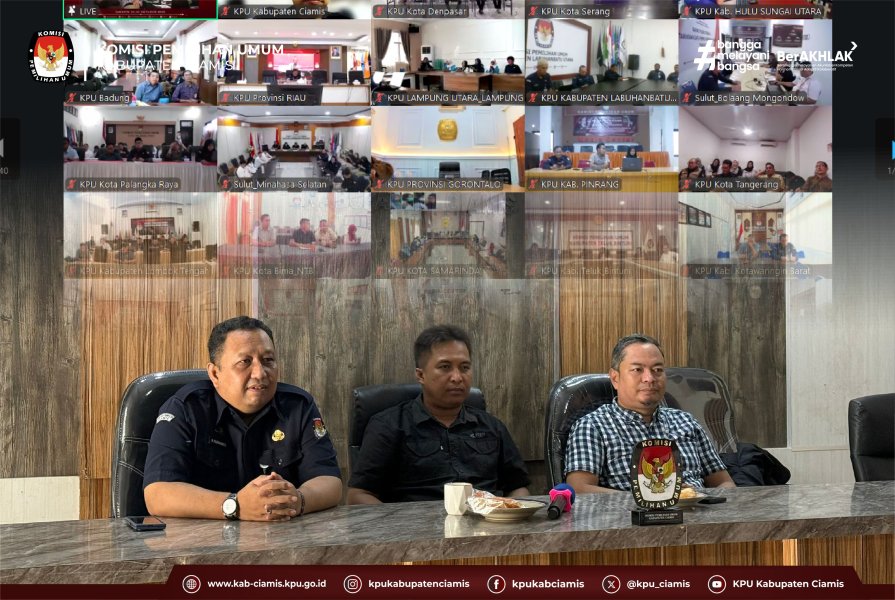 Ciamis — Komisi Pemilihan Umum (KPU) Kabupaten Ciamis mengikuti Rapat Koordinasi Nasional bertema Peningkatan dan Penguatan Kinerja Pengawasan yang digelar secara daring oleh KPU Republik Indonesia pada Selasa, (21/10). Kegiatan ini diikuti oleh seluruh KPU tingkat provinsi dan kabupaten/kota di seluruh Indonesia, termasuk KPU Provinsi/KIP Aceh serta KPU/KIP Kabupaten/Kota lainnya.