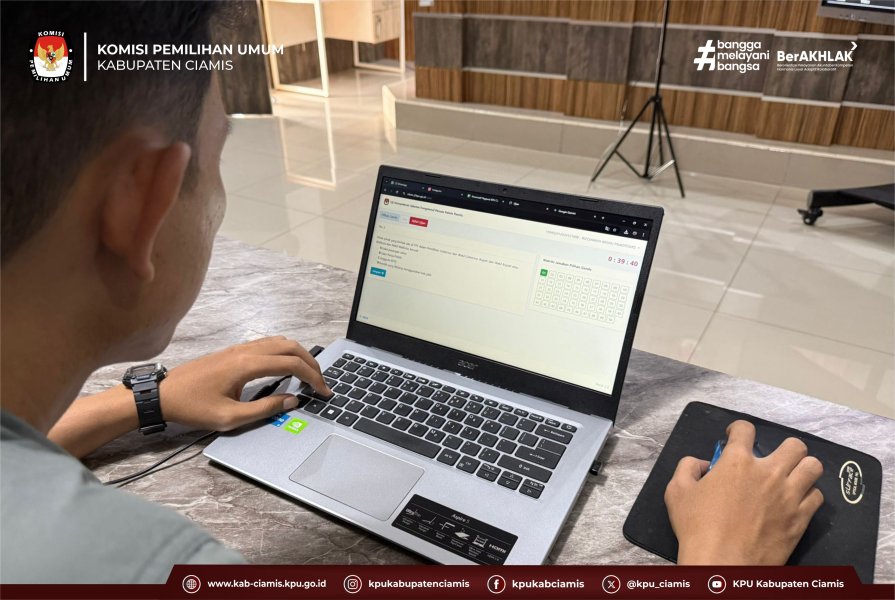 Uji kompetensi tersebut dilaksanakan secara online melalui sistem Computer Assisted Test (CAT). Meskipun berbasis daring, para peserta hadir secara fisik di Kantor KPU Kabupaten Ciamis untuk mengikuti ujian dengan pengawasan langsung dari panitia pelaksana.