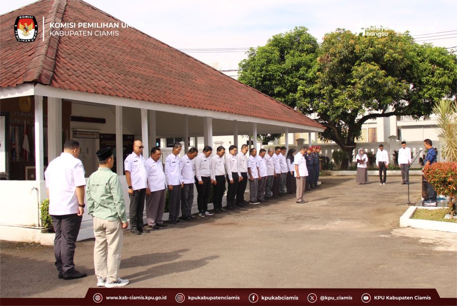 CIAMIS — Komisi Pemilihan Umum (KPU) Kabupaten Ciamis menggelar apel pagi rutin yang diselenggarakan di halaman kantor KPU Ciamis (3/11/2025. Anggota komisioner, sekretaris, serta staf sekretariat turut hadir mengikuti kegiatan yang menjadi agenda rutin setiap awal pekan tersebut.