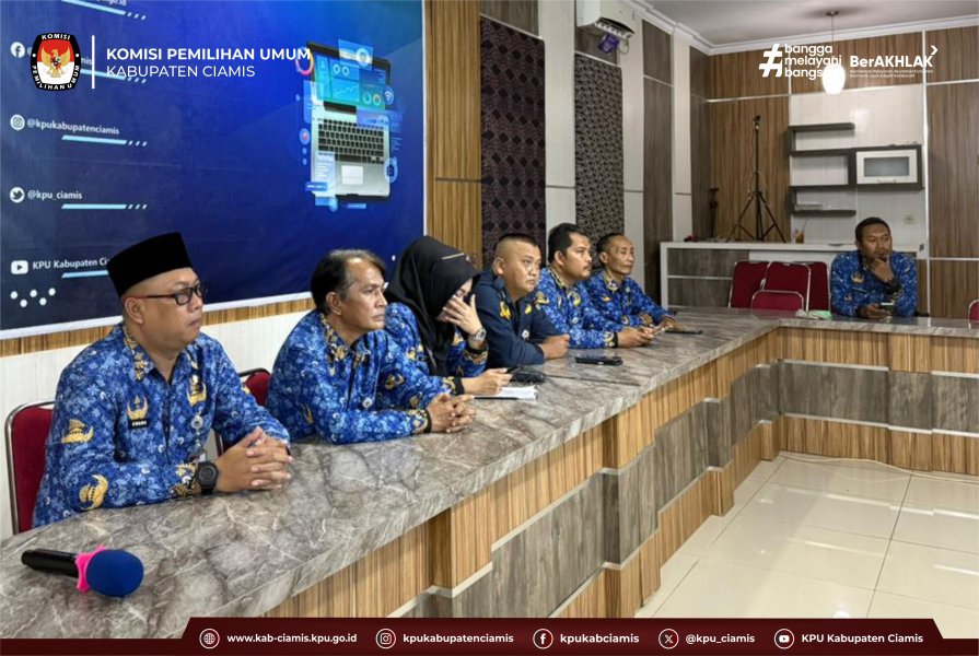 CIAMIS — Komisi Pemilihan Umum (KPU) Kabupaten Ciamis turut berpartisipasi dalam kegiatan Bimbingan Teknis (Bimtek) Orientasi Pegawai Pemerintah dengan Perjanjian Kerja (PPPK) yang digelar oleh KPU Republik Indonesia (KPU RI) secara daring melalui Zoom Meeting. Kegiatan tersebut berlangsung di Aula KPU Kabupaten Ciamis pada hari Senin, (10/11/2025).