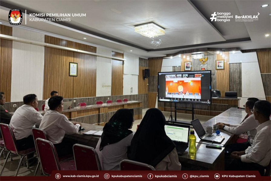 CIAMIS — Komisi Pemilihan Umum (KPU) Kabupaten Ciamis berpartisipasi dalam kegiatan Zoom Meeting yang diselenggarakan oleh KPU Provinsi Jawa Barat melalui Program Membahas Hukum (MH) JDIH Seri #10.