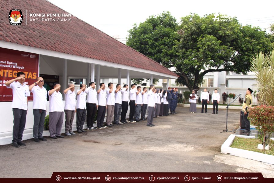Kegiatan berlangsung di halaman Kantor KPU Kabupaten Ciamis dengan suasana tertib dan khidmat. Dalam kesempatan tersebut, pimpinan KPU Kabupaten Ciamis menyampaikan penekanan pentingnya menjaga integritas, profesionalisme, dan komitmen pelayanan publik dalam setiap pelaksanaan tugas.