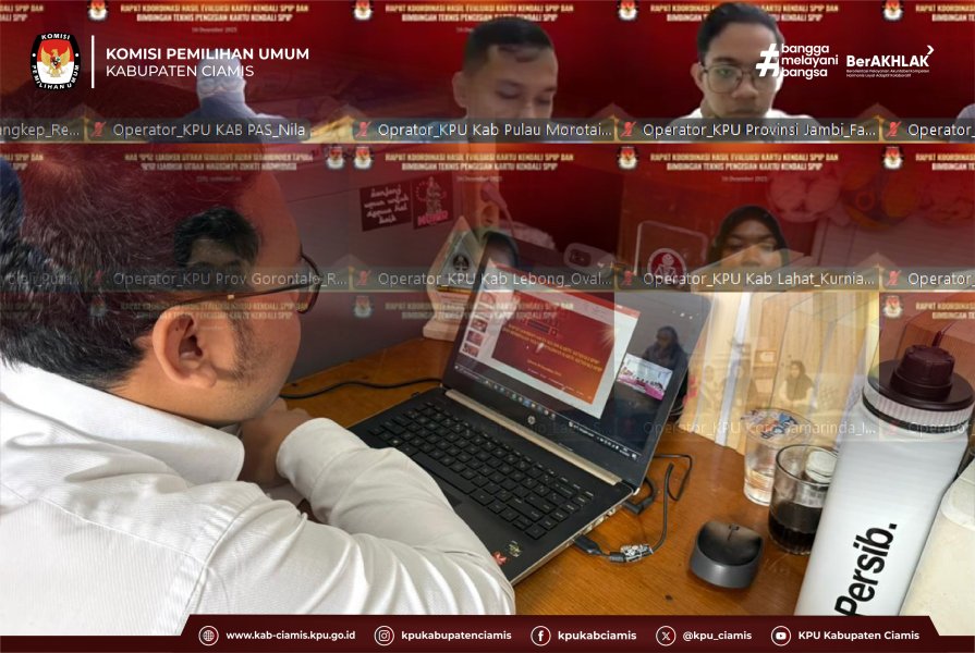 CIAMIS – Komisi Pemilihan Umum (KPU) Kabupaten Ciamis mengikuti Zoom Meeting Bimbingan Teknis (Bimtek) Pengisian Kartu Kendali yang diselenggarakan oleh KPU Republik Indonesia, pada Selasa, (16/12/2025). Kegiatan ini dilaksanakan sebagai tindak lanjut Keputusan KPU Nomor 855 Tahun 2025 tentang Pedoman Teknis Penyelenggaraan Sistem Pengendalian Intern Pemerintah (SPIP) di lingkungan KPU, KPU Provinsi, dan KPU Kabupaten/Kota.
