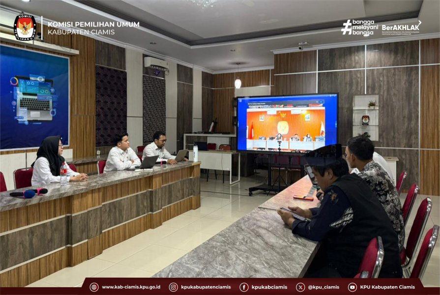 CIAMIS — Komisi Pemilihan Umum (KPU) Kabupaten Ciamis mengikuti Zoom Meeting Program MH (Membahas Hukum) JDIH KPU Provinsi Jawa Barat Seri #14 dengan topik Pembahasan Laporan Tahunan di Bidang Hukum Tahun 2025. Kegiatan ini diselenggarakan oleh KPU Provinsi Jawa Barat pada Jum’at, (19/12/2025).