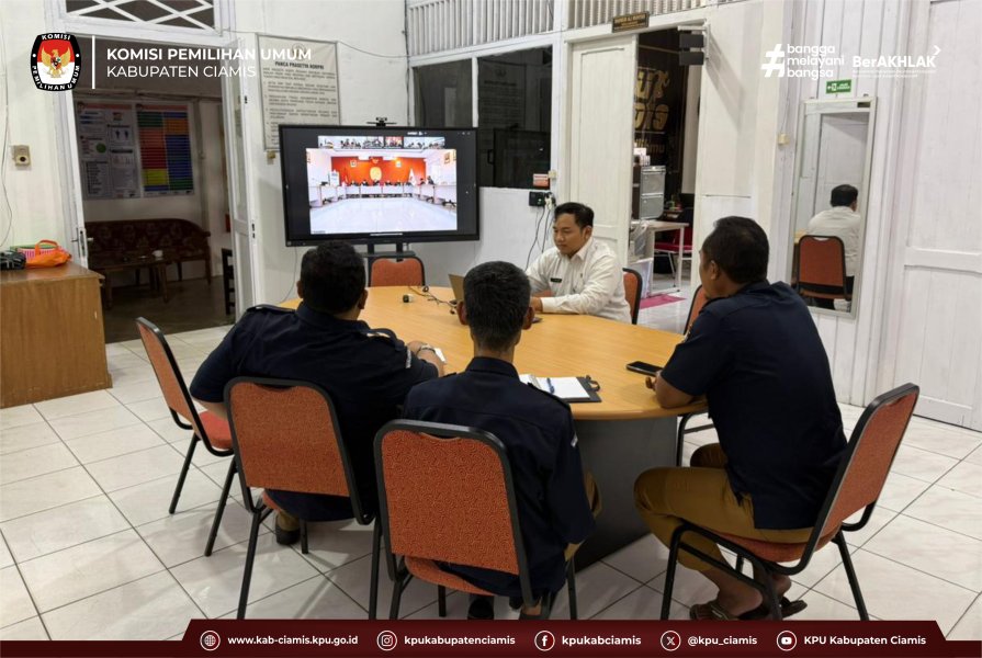 CIAMIS – Komisi Pemilihan Umum (KPU) Kabupaten Ciamis mengikuti rapat koordinasi bersama KPU Kabupaten/Kota se-Jawa Barat yang dilaksanakan secara daring melalui Zoom Meeting, pada Selasa, (23/12/2025). Kegiatan ini diselenggarakan oleh KPU Provinsi Jawa Barat dalam rangka membahas strategi pelaksanaan langkah-langkah akhir Tahun Anggaran 2025.