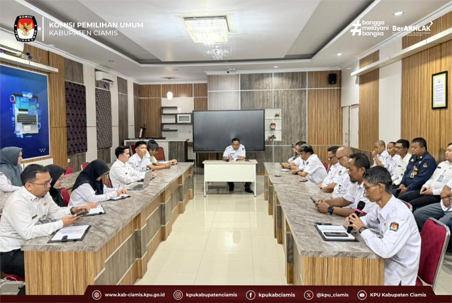 CIAMIS – Komisi Pemilihan Umum (KPU) Kabupaten Ciamis melaksanakan Rapat Kerja Internal Rutin pada Senin, (29/12/2025). Kegiatan tersebut berlangsung di Aula KPU Kabupaten Ciamis dan diikuti oleh seluruh jajaran internal KPU Kabupaten Ciamis.