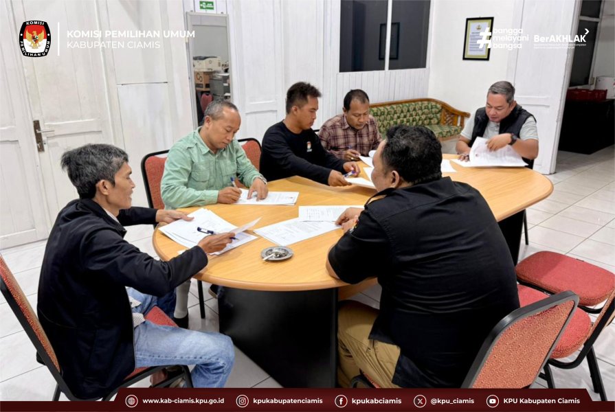 Penandatanganan Berita Acara tersebut dihadiri oleh Ketua KPU Kabupaten Ciamis, seluruh Anggota KPU Kabupaten Ciamis, serta Sekretaris KPU Kabupaten Ciamis. Kehadiran unsur pimpinan dan sekretariat menunjukkan komitmen bersama dalam menjaga prinsip transparansi, akuntabilitas, dan profesionalitas penyelenggaraan pemilu.