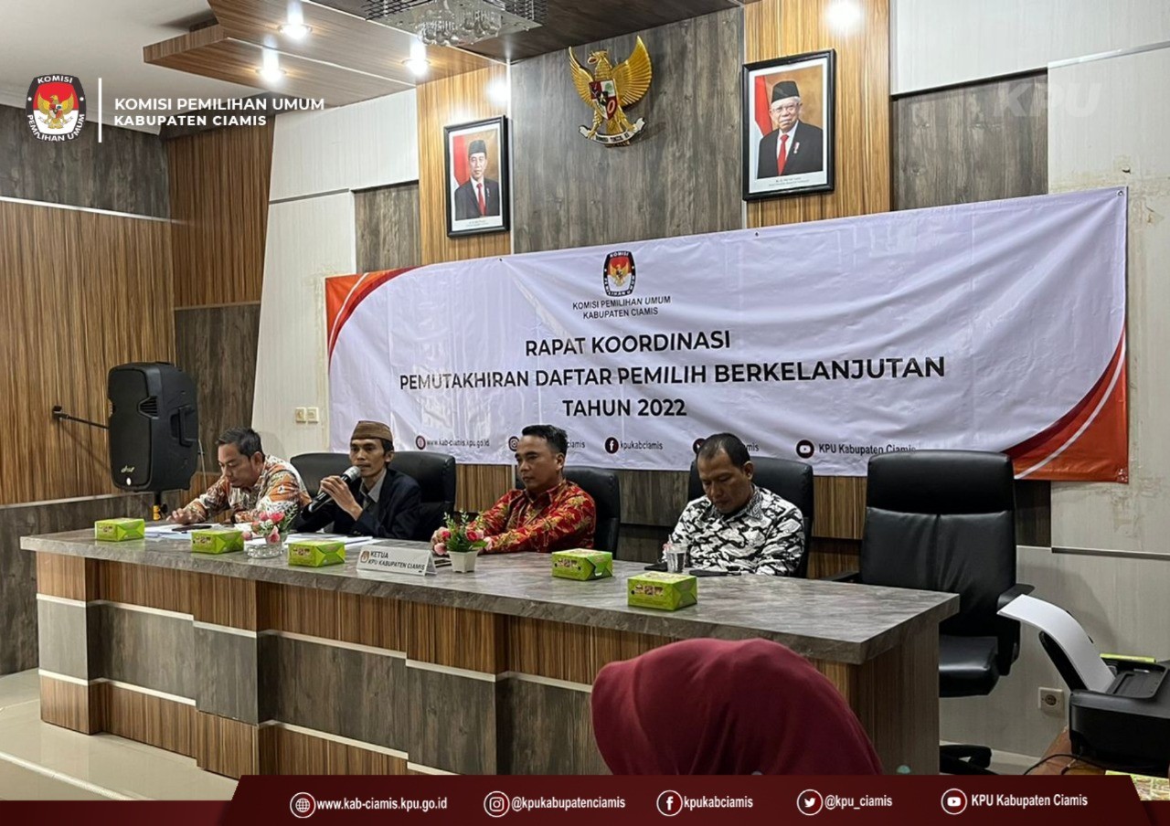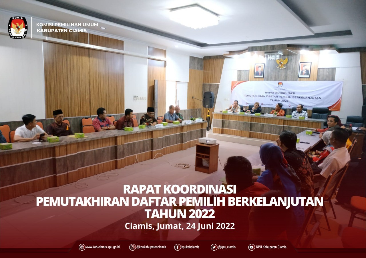 Jumat, 24 Juni 2022, KPU Kabupaten Ciamis telah melaksanakan Rapat Koordinasi Pemutakhiran Daftar Pemilih Berkelanjutan Tahun 2022 Periode Bulan Juni/Triwulan II bertempat di Aula KPU Kabupaten Ciamis.